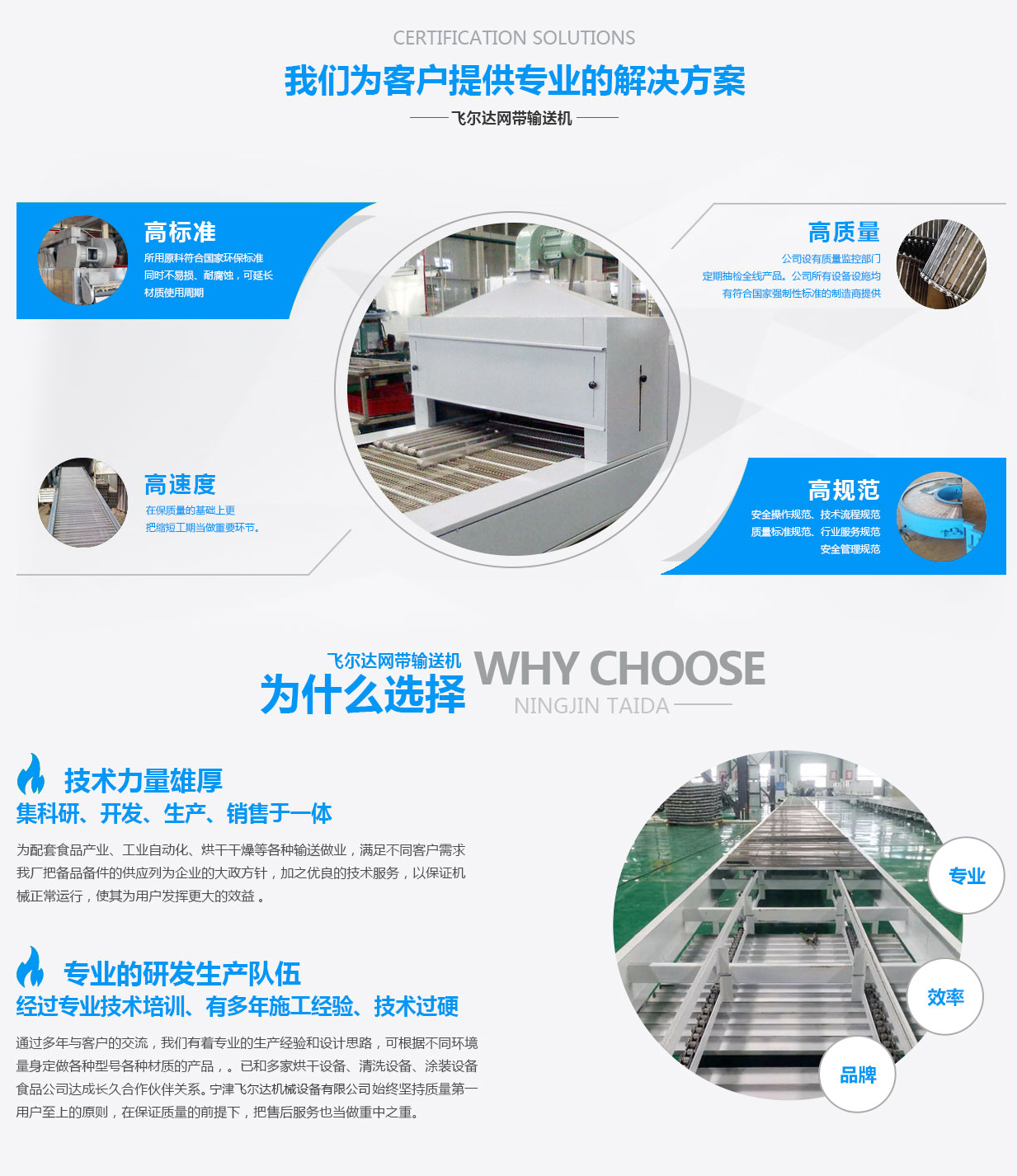 寧津飛爾達機械設(shè)備有限公司始建于1997年,位于山東省寧津縣經(jīng)濟開發(fā)區(qū)。本公司以生產(chǎn)制造金屬類網(wǎng)帶、鏈板、鏈條為主導產(chǎn)品。 建廠近20年,已和多家烘干設(shè)備、清洗設(shè)備、涂裝設(shè)備、食品公司、工業(yè)自動化達成長久合作伙伴關(guān)系。在保質(zhì)量、保工期的基礎(chǔ)上更把售后當做重要環(huán)節(jié)。 本廠配件系列有:輸送網(wǎng)帶、輸送鏈板、輸送鏈條、乙型網(wǎng)帶、烘干網(wǎng)帶、清洗網(wǎng)帶、不銹鋼鏈板、沖孔鏈板、排屑鏈板。 設(shè)備系列:網(wǎng)帶輸送機、鏈板輸送機、烘干輸送機、清洗輸送機、轉(zhuǎn)彎輸送機。